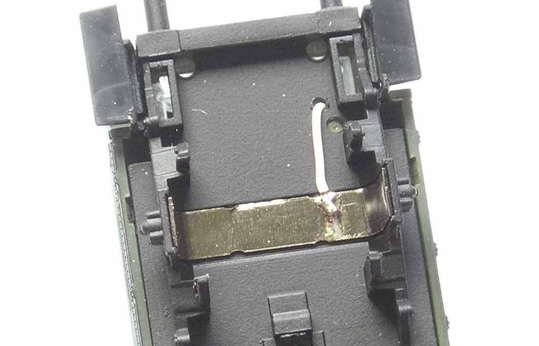 Wageninnenbeleuchtung für Personenwagen „Donnerbüchse“ neu Bi 29 (Fa. Tillig)(passend für die neue Ausführung mit Inneneinrichtung und geschlossener Bühne), Tillig Art.-nr. 13001/ 13002) Lichtfarbe gelb/ sgwTechnische Daten: klick oben ![]() Information: Beide Bausätze (Analog- und Digitalplatine) wurden speziell für den Einbau in Modellfahrzeuge Spur TT entwickelt und für diesen Wagen angepasst. Durch Einsatz moderner Bauelemente ist der Stromverbrauch äußerst niedrig. Die Helligkeit der Beleuchtung ist einstellbar und bleibt konstant. Der Einsatz eines Stützkondensators in Verbindung mit superhellen LEDs vermindert das Flackern und Aussetzer erheblich. Achten Sie trotzdem auf eine gute Stromaufnahme durch saubere Räder. Einbau/ Anschluss: Die Leiterplatte liegt auf der Inneneinrichtung. Bei der Analogvariante bestimmt der Stützkondensator den Einbauort. Bei der Digitalvariante ist der Kondensator natürlich auch im Abort plaziert, muss aber nachträglich angeschlossen werden. Empfehlenswert ist, die Inneneinrichtung der Wagen farblich zu gestalten. (Fußboden braun, falls Sie weiße LEDs einsetzen, die Sitze holzfarben). Die Stromaufnahme erfolgt im einfachsten Fall von den Blechlagerbügeln. Eine weitere Verbesserung der Stromaufnahme wird unter der Rubrik Tipps beschrieben. Die Abortwände sind nach Einbauanleitung so zu kürzen, dass der Kondensator dort Platz hat. Falls Sie die Analog-Beleuchtung abschaltbar machen wollen, können Sie an geeigneter Stelle im Wagenboden einen kleinen Stecker mit Jumper (Einzelteile E0050) einbauen.