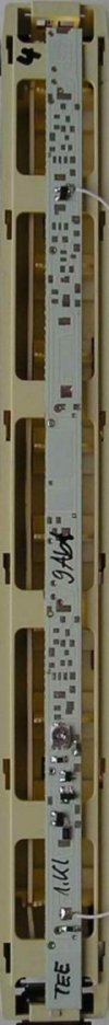 Bild: 9 Abteile (Avmz 111, TEE, 13575) Lichtfarbe warmweiß - Klick zum Vergrößern Information: Diese Bausätze (Analog- und Digitalplatine) wurden speziell für den Einbau in Modellfahrzeuge Spur TT entwickelt und für diesen Wagen angepasst. Die "bessere" Variante ist 12 mm breit hat natürlich in jedem Abteil 1 LED im Gang 6 und je 1 in den Türbereichen. Auf Wunsch sind auch noch in den Aborten LEDs anschliesbar (E 0002 bestellen). Die beiden "sparsameren" Varianten sind 8mm breit und haben 1 LED-Reihe. Durch Einsatz moderner Bauelemente ist der Stromverbrauch äußerst niedrig. Die Helligkeit der Beleuchtung ist einstellbar und bleibt konstant. Der Einsatz eines Stützkondensators in Verbindung mit superhellen LEDs vermindert das Flackern und Aussetzer erheblich. Achten Sie trotzdem auf eine gute Stromaufnahme durch saubere Räder. Einbau: Die Leiterplatte liegt über den Stegen des Wagenkastens und wird prinzipiell durch den Kondensator platziert. Leider hat der Hersteller nicht damit gerechnet, dass jemand über jedem Abteil Licht einbauen könnte. An 3 Stellen müssen die Stege etwas ausgearbeitet werden (feilen oder fräsen).