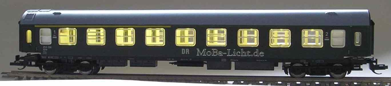 Wageninnenbeleuchtung für einen Y-Wagen (Fa. Tillig /BTTB M 1:120)passend für die alte Ausführung mit LüP 195 mm, für beide Ausführung (1. und 2. Klasse = alle mit 9 Abteilen) Lichtfarbe warmweißFür die neue Ausführung mit LüP 204 mm und die Kühn-Wagen passen die LPs ab Nr. B3512 Technische Daten: klick oben ![]() Wie man leicht sehen kann, die Inneneinrichtung schreit förmlich nach Pinsel und Farbe. Anregung u. a. dazu und darüber hinaus viel Interessantes gibt es hier: - TT-Board Information: Die Lichtplatinen wurden speziell für den Einbau in Modellfahrzeuge Spur TT entwickelt und für diesen Wagen angepasst. Durch Einsatz moderner Bauelemente ist der Stromverbrauch äußerst niedrig. Die Helligkeit der Beleuchtung ist einstellbar und bleibt konstant. Der Einsatz eines Stützkondensators in Verbindung mit superhellen LEDs vermindert das Flackern und Aussetzer erheblich. Achten Sie trotzdem auf eine gute Stromaufnahme durch saubere Räder. Einbau: Die Leiterplatten liegen über der Inneneinrichtung und können an geeigneter Stelle angeklebt werden. Alle LEDs der Abteile sind etwa mittig über den Fenstern angeordnet und im Gang mittig zwischen den Fenstern. Die Spannungsversorgung erfolgt an der Leiterplatte über die mit „E“ gekennzeichneten Pads von den Drehgestellen aus. Eine zuverlässige Stromzuführung ist bei diesen Wagen auf einfachste Weise durch ein Stück Spezialdraht (Art.-Nr. 0100 bitte extra erwerben) möglich. Fehlen jetzt nur noch die Reisenden. Falls Sie die Analog-Beleuchtung abschaltbar machen wollen, können Sie an geeigneter Stelle im Wagenboden einen kleinen Stecker mit Jumper (Einzelteile E0050) einbauen. ![]() Lieferumfang: - 1 Beleuchtungsleiterplatte (geprüft und voreingestellt) Optionen: Auf jeder längeren Lichtleiterplatte ist eine unabhängige 2. Elektronik für Schlusslichter bestückbar. Die Helligkeit ist getrennt von der Innenbeleuchtung einstellbar und konstant. Betrieb nur bei Vorwärtsfahrt. Nachleuchtdauer ca. 5 Minuten. (B 0303 Aufpreis 9,00 € inkl. Goldcap) (In der Digitalausführung können die Schlusslicht-LEDs direkt an dafür vorgesehene Pads angeschlossen werden). Links ist die Analogversion aus 2 Leiterplatten abgebildet. Bezug und Information: - Bestellung auf www.MoBa-Licht.de Falls Sie die Beleuchtung nicht selbst einbauen wollen oder können, den Kompletteinbau übernehme ich auch. Lassen Sie sich ein Angebot erstellen. |