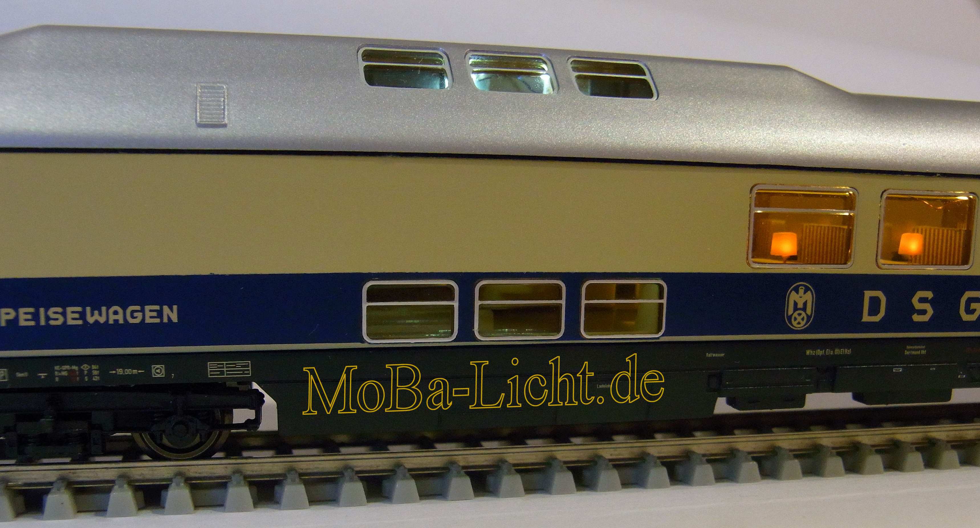Bausatz für 1 Wagenbeleuchtungpassend für Tillig-Speisewagen WR4üm-62 Rheingold/ TEE od. baugleiche Buckelspeisewagen (z.B. Tillig 16590)Technische Daten: klick oben