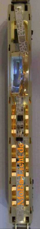 Information: Da für die Analogvariante vom Hersteller eine passende Innenbeleuchtung angeboten wird, beschänke ich mich auf eine Digitalvariante. Die Digitalvariante zeichnet sich aus durch: - integrierten Dekoder (DCC) - Anschluss für beleuchtete Tischlampen (schaltbar) vorhanden - Die Tischlampen sind nicht Bestandteil dieses BS, bitte extra bestellen s.h. unten - Küche oben und unten beleuchtet und schaltbar - Gang zur Bar und Bar extra beleuchtet - (da der Wagen im Normalfall nie als letzter eingereiht war, habe ich auf eine Schussbeleuchtung verzichtet). Einbau: Alle sichtbaren LEDs liegen etwa mittig über den Fensterausschnitten. Dazu müssen im Wagenkasten 2 Stege etwas bearbeitet werden. Am einfachsten mit einem kleinen Fingerfräser ca.4 mm ausfräsen. Die Leiterplatten liegen auf den Stegen und können mit doppelseitigem Klebeband oder mit Hin und Weg angeklebt werden. Die beiden einzelnen LEDs werden mit den Anschlussdrähten über den Fensterzwischenräumen im Gang positioniert. ![]() Für die untere und obere Küche sind die kleinen LPs mit je 2 weißen LEDs und den Vorwiderständen gedacht. ![]() Zur besseren Gestaltung der Inneneinrichtung habe ich Küchen- und Bareirichtungen aus dem Internet gesucht, verkleinert, ausgedruckt und aufgeklebt. Ebenso sind die Sitze und das Furnier der Wände entstanden, wobei ich das Edelholzfurnier zugunsten einer besseren Sichtbarkeit etwas aufgehellt habe. Der Speicher besteht hier aus 2 Elkos 220 µF/25V und findet neben der Küche unter der Bar Platz. ![]() Leider ist auch bei diesen Wagen die Stromversorgung für ein Digitalsignal nicht tauglich. Ich ersetze die Radsätze durch mittig geteilte von Mod-Müller. Die Metalleinsätze der Drehgestele schneide ich auseinander und löte an beide Hälften Dekoderlitze an, die ich bis zur LP führe. Optionen: Tischlampen fertig oder als Teilesatz 16 Tischlampen Artikelnr. E0293-16 (warmweiß) Teilesatz zum Selbstbau E0294-16 (warmweiß) 16 Tischlampen Artikelnr. E0295-16 (orange) Teilesatz zum Selbstbau E0296-16 (orange) Auf der Digitalleiterplatte sind die Anschlüsse für die Tischlampen bereits vorhanden (getrennt einschaltbar und dimmbar). Lieferumfang: - 1 Beleuchtungsleiterplatte (geprüft und voreingestellt) Bezug und Information: - Bestellung auf www.MoBa-Licht.de 4g Falls Sie die Beleuchtung nicht selbst einbauen wollen oder können, den Kompletteinbau übernehme ich auch. Lassen Sie sich ein Angebot erstellen. |