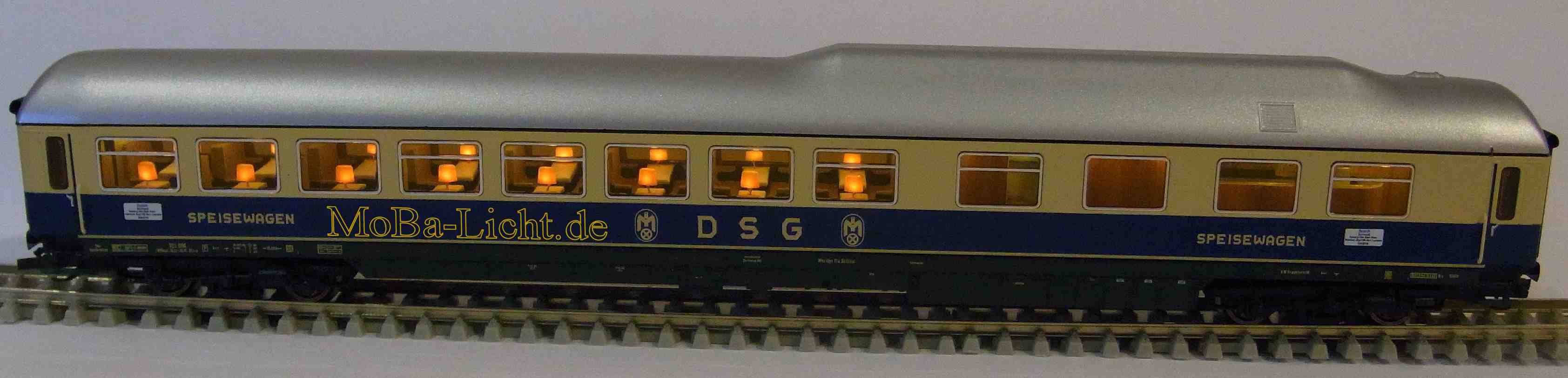 Bausatz für 1 Wagenbeleuchtungpassend für Tillig-Speisewagen WR4üm-62 Rheingold/ TEE od. baugleiche Buckelspeisewagen (z.B. Tillig 16590)Technische Daten: klick oben