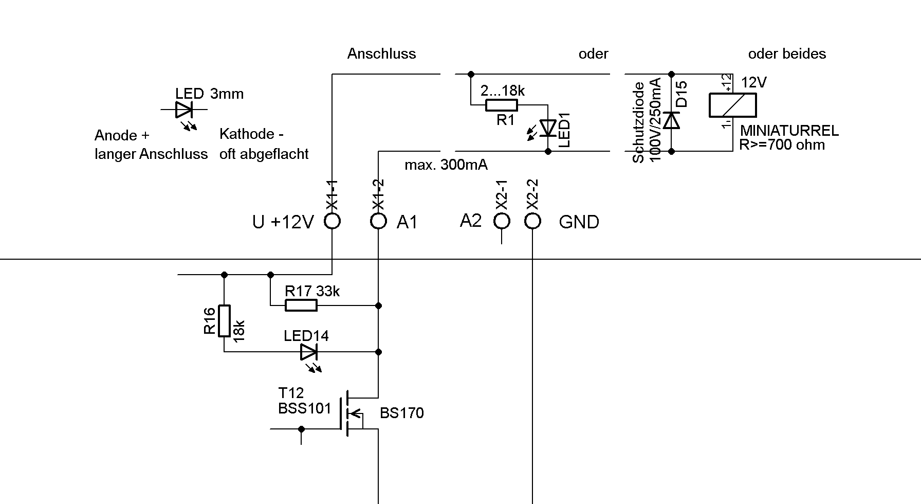 Information: Entgegen den weitläufig bekannten Gleisbesetztmeldern, bei denen ein Spannungsabfall im Bahnstromkreis erkannt wird, wurde diese geniale Schaltung von Helmut Schäfer entworfen. Hier erfolgt die Erkennung über einen Trafo. Dazu wird lediglich ein Pol der Bahnzuleitung durch das Loch im Trafo geführt. Es gibt somit keinerlei elektrische Verbindung zwischen Meldeelektronik und Bahnstromkreis und damit auch kein Spannungsabfall. Die Schaltung ist so empfindlich, dass Loks, Wagen mit Dekoder oder auch nur Widerstandsachsen mit max. 16kOhm (Forderung nach NEM) erkannt werden. Es reicht, wenn die Zuleitung des zu überwachenden Gleises (nur 1 Pol) durch das Loch des Trafos geführt wird. Die Besetztmeldung erfolgt durch auf Masse (-) schalten des Ausganges und wird durch eine LED angezeigt. An den Ausgang können weitere LEDs über entsprechende Vorwiderstände oder ein Relais angeschlossen werden. Ebenso ist die Verbindung mit vielen digitalen Meldebausteinen zur Weiterleitung an eine Digital-Zentrale und/oder an einen Rechner möglich. Der Ausgangsstrom sollte 300mA nicht überschreiten. Weitere Beschreibung und Einsatzmöglichkeiten in einer Anleitung vom "technischen Vater": Daten: 5V Variante: Spannung 5V - Stromverbrauch 5/ 7mA - Empfinflichkeit ca. 22 kOhm - max. Ausgangsstrom 500mA 12V Variante: Spannung 12V - Stromverbrauch 2,3/ 3mA - Empfinflichkeit ca. 22 kOhm - max. Ausgangsstrom 500mA Anschluss von Relais und LED: ![]() Optionen: Mittlerweile sind recht günstige Relaisplatinen z.B. für den Arduino auf dem Markt. Sowohl die Variante mit und auch ohne Optokoppler lassen sich anschließen. ![]() Lieferumfang: - sh. oben 24g Bezug und Information auch : - Die Digitalzentrale - Bestellung auf www.MoBa-Licht.de |