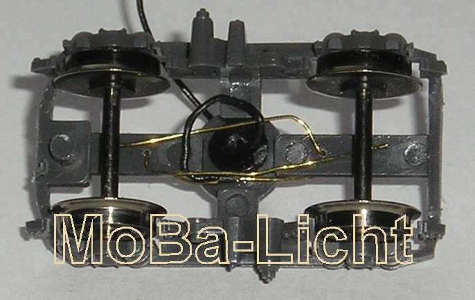 StromabnehmerCa. 2m Spezialdraht 1,50 € Beschreibung: Ø 0,3 mm (ausreichend für 10...25 Stromabnehmer) Für Wagen ohne Metall-Achslager die einfachste und schnellste Variante der Stromaufnahme. Diese ist für analoge Beleuchtung völlig ausreichend und betriebssicher. Für digital schaltbare Beleuchtung empfehle ich unbedingt eine 4-Punkt-Stromaufnahme, d.h. jede Radscheibe nimmt Strom auf. Dazu eignen sich die mittig geteilten Radsätze der Fa. Mod-Müller. Genaueres dazu später unter Tips. Der Draht ist ausreichend elastisch, hat einen geringen Übergangswiderstand in der Paarung mit modernen Radscheiben und Achsen und ist gut lötbar. ![]() Die einfachste Art, ist von einseitig isolierten Radsätzen die Spannung an der Achse abzugreifen. Je nach Möglichkeit sollte die Länge der Biegefeder 15 … 50 mm betragen (je länger , umso besser). Der Draht kann an geeigneter Stelle durch den Wagenboden geführt oder am Drehgestellzapfen angelötet werden. Die Kontaktstelle liegt vorteilhaft zwischen Wagenboden und Achse. Die Federkraft soll so eingestellt sein, dass bei ausgebautem Radsatz der Draht ca. 2 mm über den Kontaktpunkt hinweg federt. ![]() Bezug und Information: - Bestellung auf www.MoBa-Licht.de |