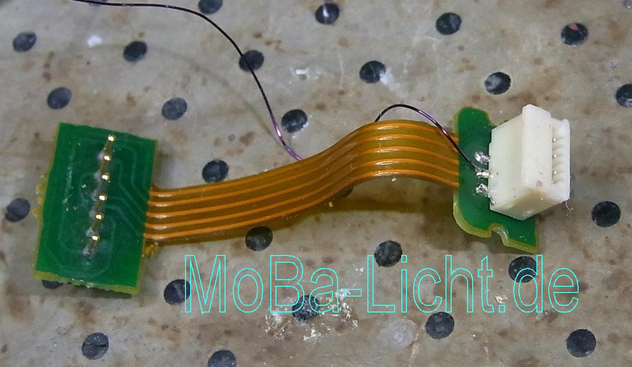 Ich habe 3 CuL-Drähte Drm 0,15 mm an die Buchse gelötet, um Führerstandsbeleuchtung und Feuerbüchsenflackern